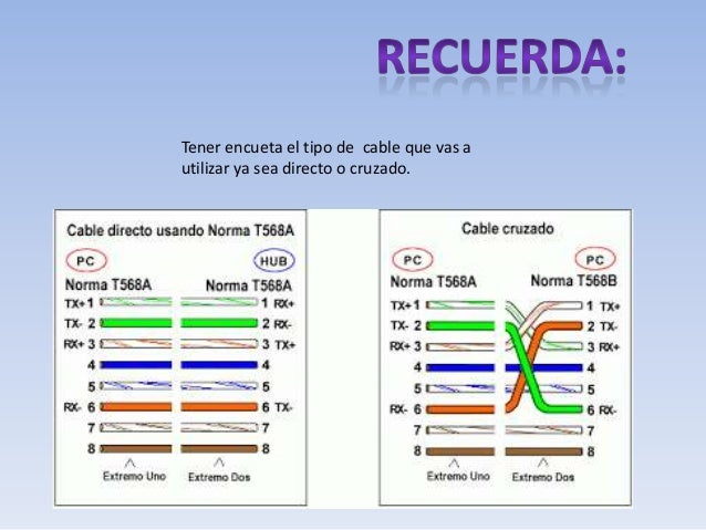 - 7. Tener encueta el tipo de cable que vas a utilizar ya sea directo o cruzado.